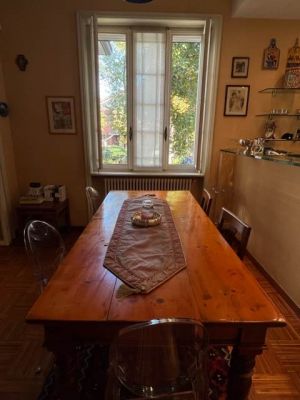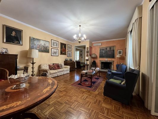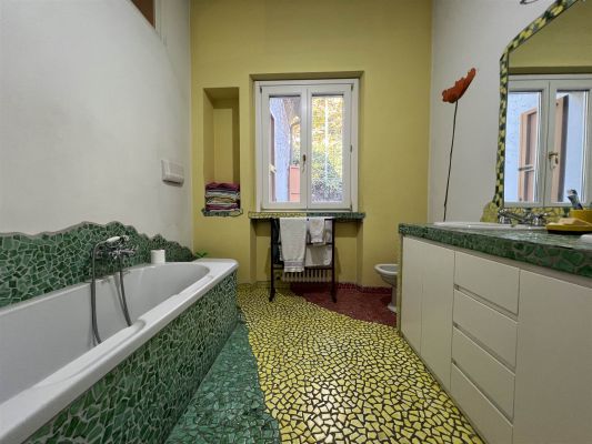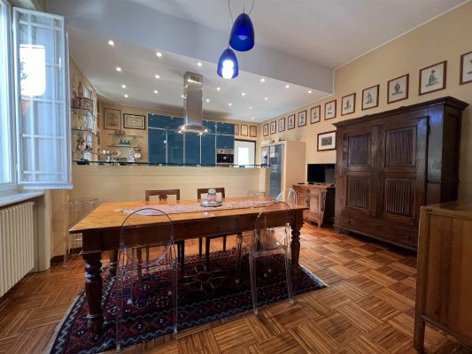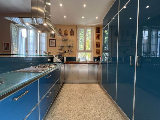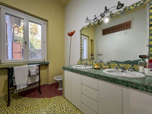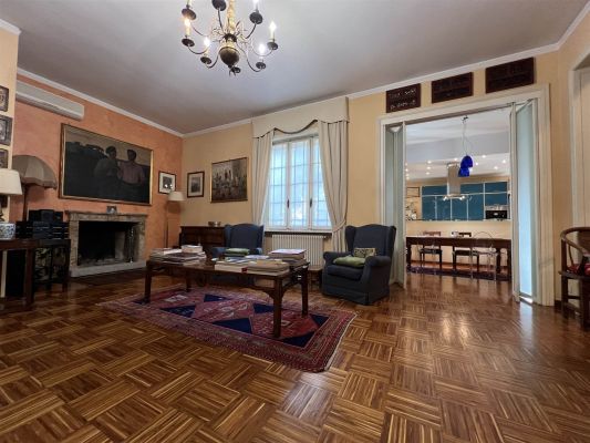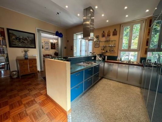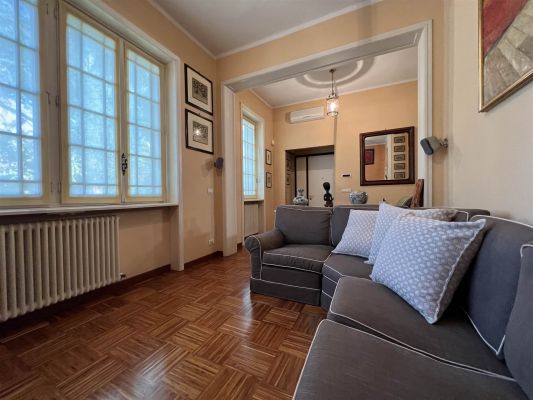 In tranquilla laterale di Via Vittorio Veneto spaziosa villa dalle suggestive atmosfere. Un unico piano abitativo affacciato sul grande giardino si articola in un ampio salone con camino, un riservato studio, una zona pranzo con elegante cucina, tre camere da letto matrimoniali, due bagni, ripostiglio. La sottostante zona taverna, internamente collegata, comprende un esteso spazio svago ed una zona fruibile ad ufficio con accesso dall'area esterna della proprietà. Ampi vani di servizio e bagno. Cantina e box doppio. Le finiture signorili e calde coniugano gli accoglienti spazi interni ad un giardino piantumato e godibile di circa 400 mq. arricchito da una piccola struttura coperta con forno da dedicare al relax ed ai momenti conviviali.